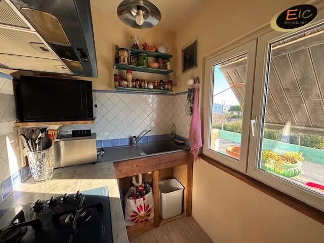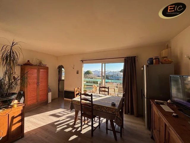 À Gruissan, à seulement 100 m de la plage, découvrez ce chalet idéalement situé, offrant un séjour lumineux prolongé par une terrasse avec vue dégagée, une cuisine fonctionnelle, une chambre, une salle d’eau avec WC ainsi qu’un garage.