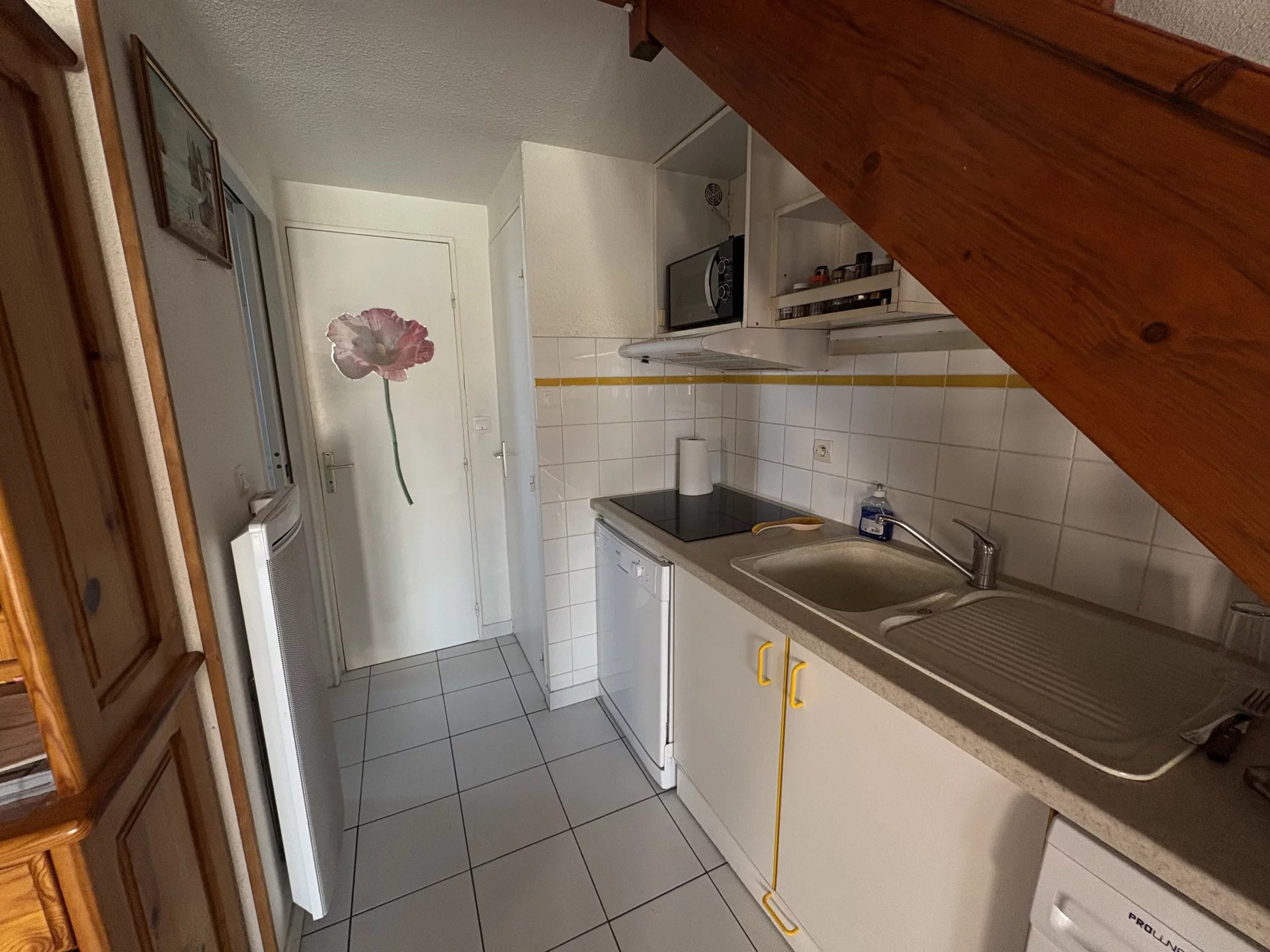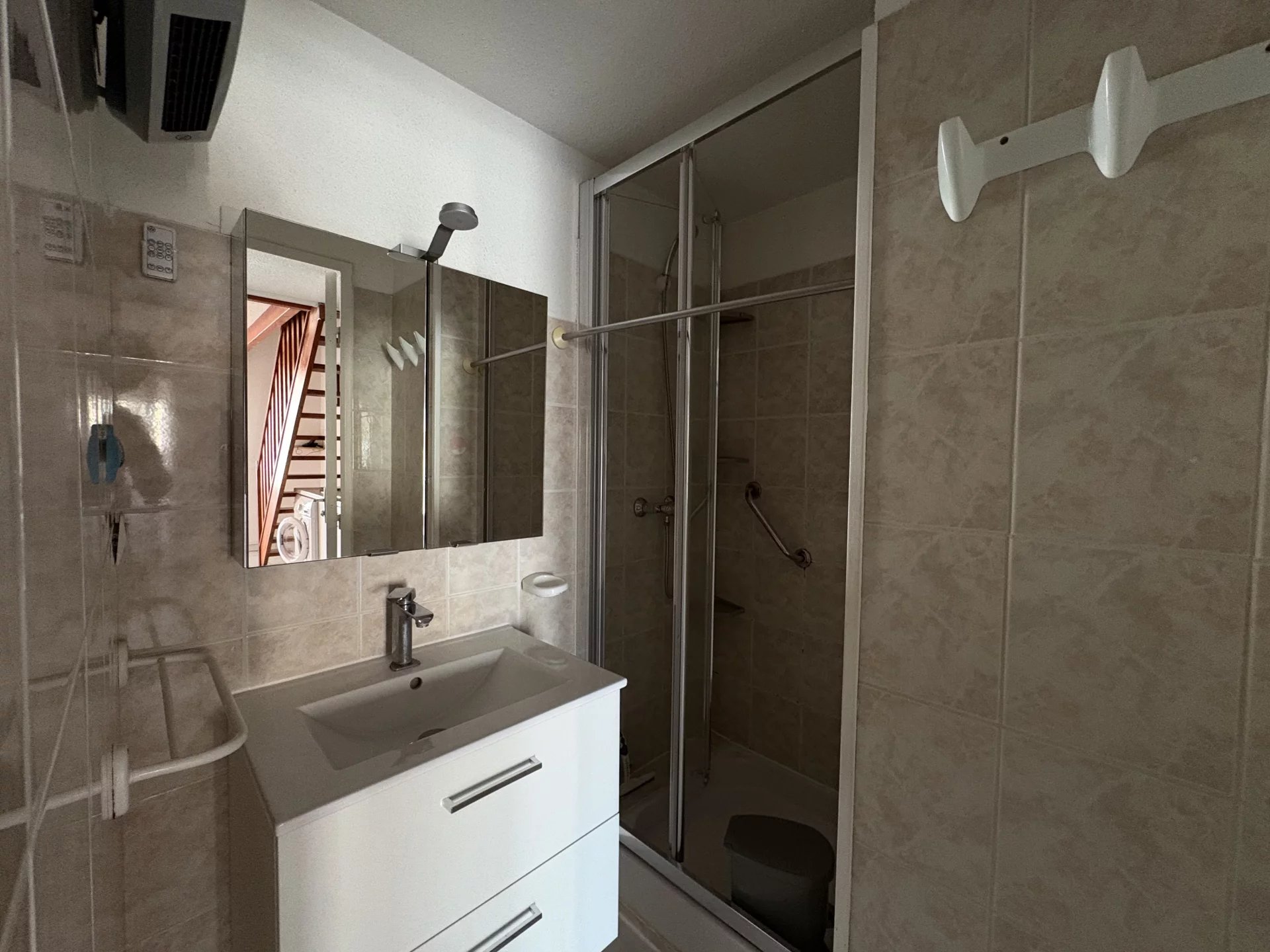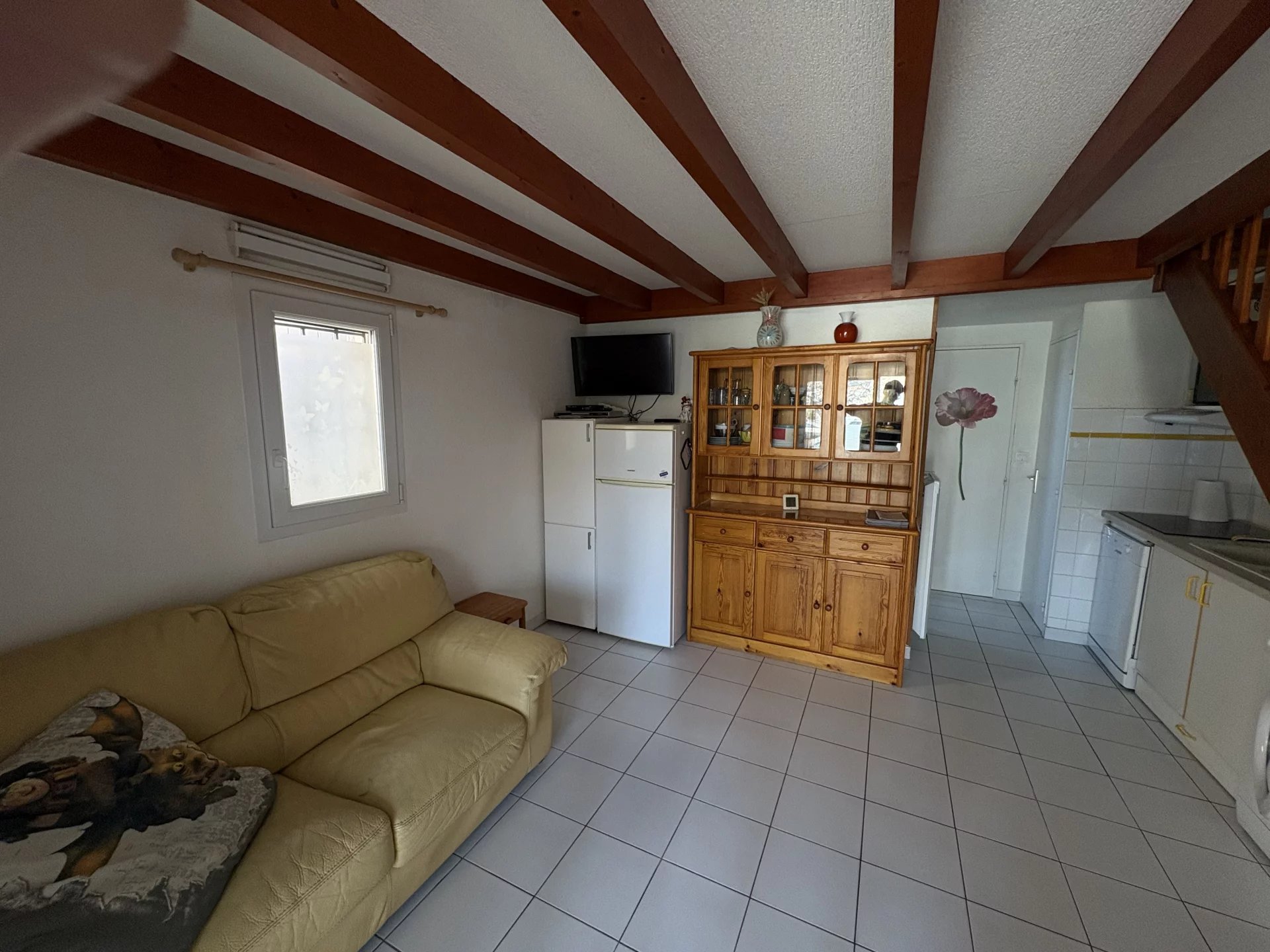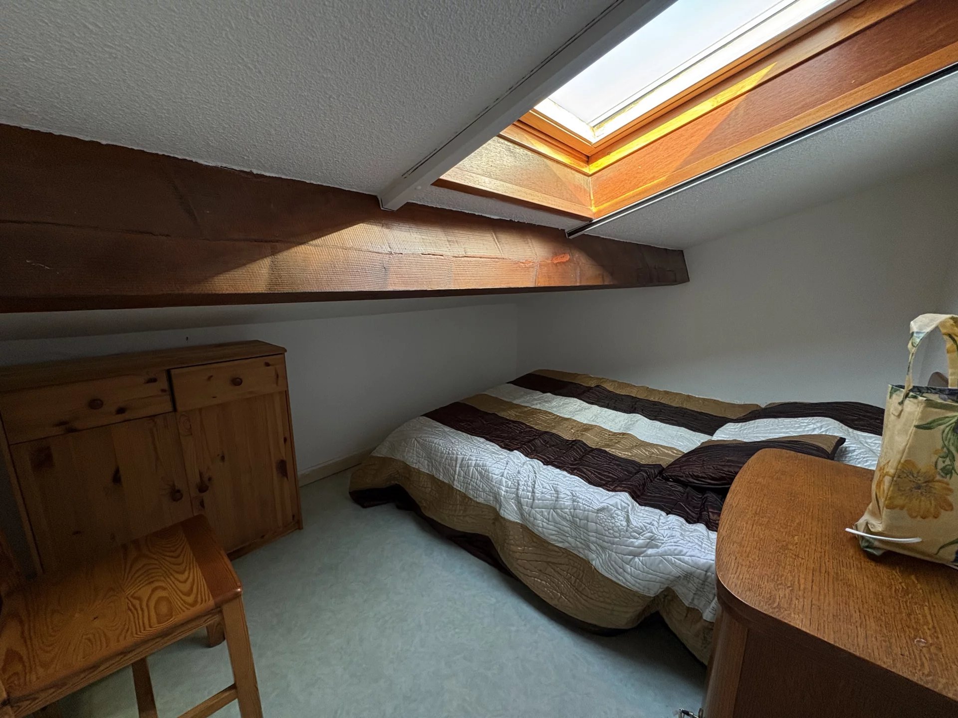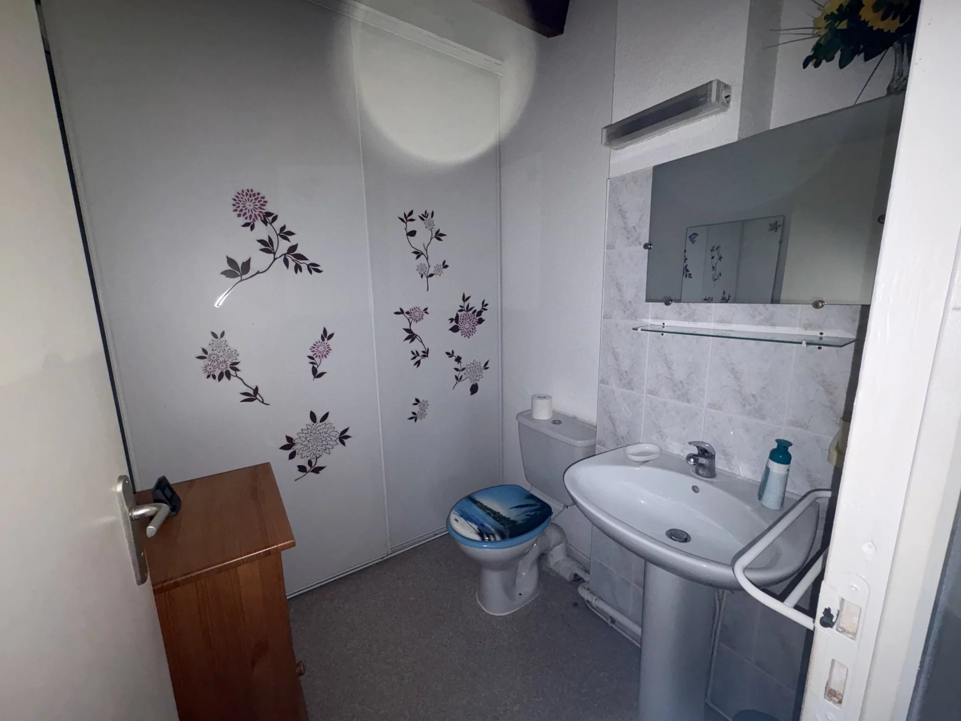 À l’étage, vous trouverez un toilette, une chambre supplémentaire ainsi qu’une mezzanine, offrant un espace polyvalent pouvant servir de bureau, coin lecture ou chambre d’appoint.