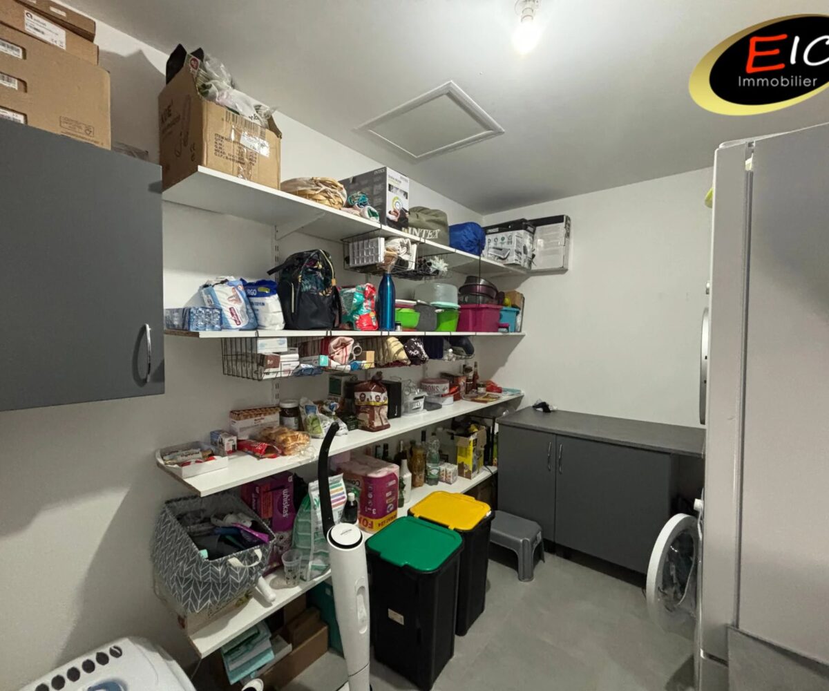 À l’intérieur, la pièce de vie spacieuse et lumineuse, ouverte par quatre baies sur le jardin, crée une atmosphère chaleureuse. La grande cuisine, parfaitement agencée, offre de nombreux rangements, un îlot central pour les repas du quotidien ainsi qu’une buanderie attenante très pratique.